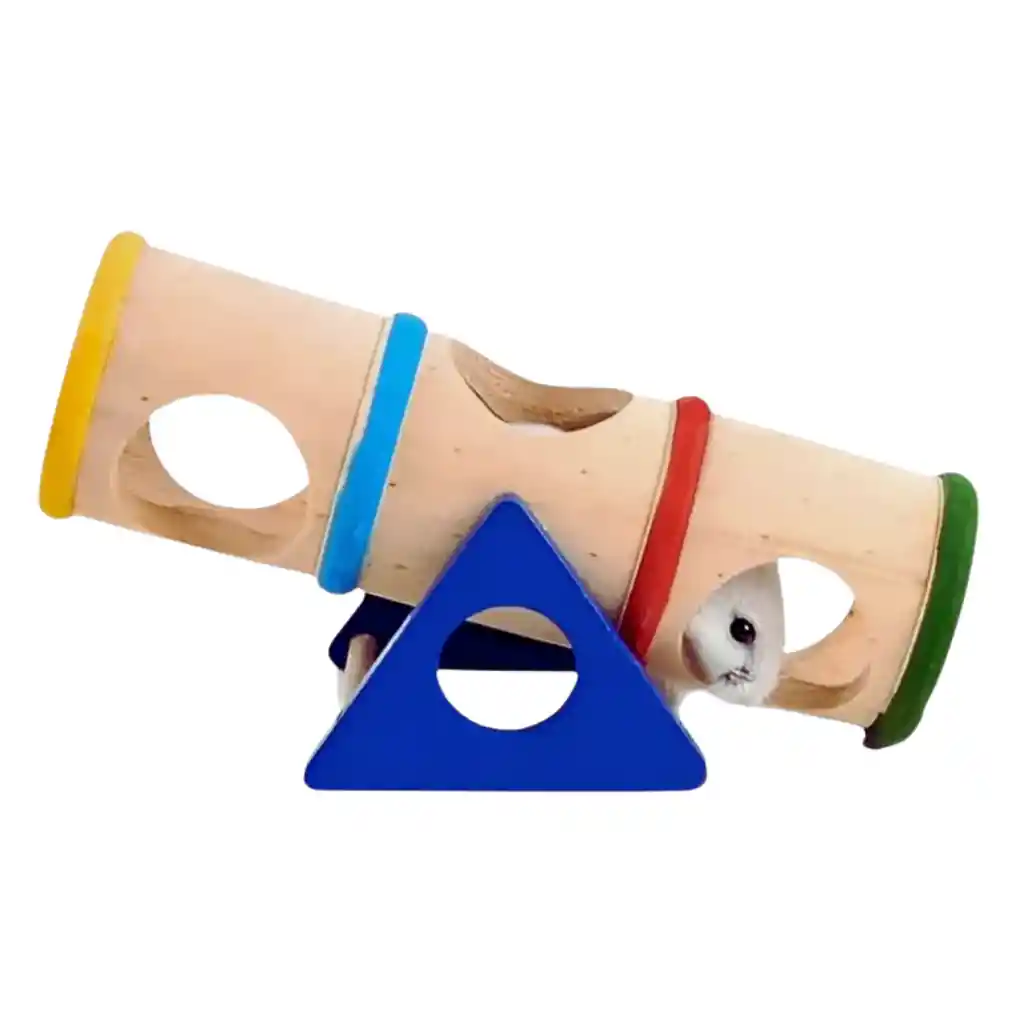 Este juguete interactivo sube y baja para hámster ofrece una experiencia de juego estimulante que promueve el ejercicio, la exploración y el bienestar diario de tu pequeño roedor. Fabricado en madera natural con colores llamativos, cuenta con túneles y aberturas que fomentan la curiosidad y el movimiento. Ideal para reducir el estrés, mantener la actividad física y enriquecer su entorno de forma segura y divertida