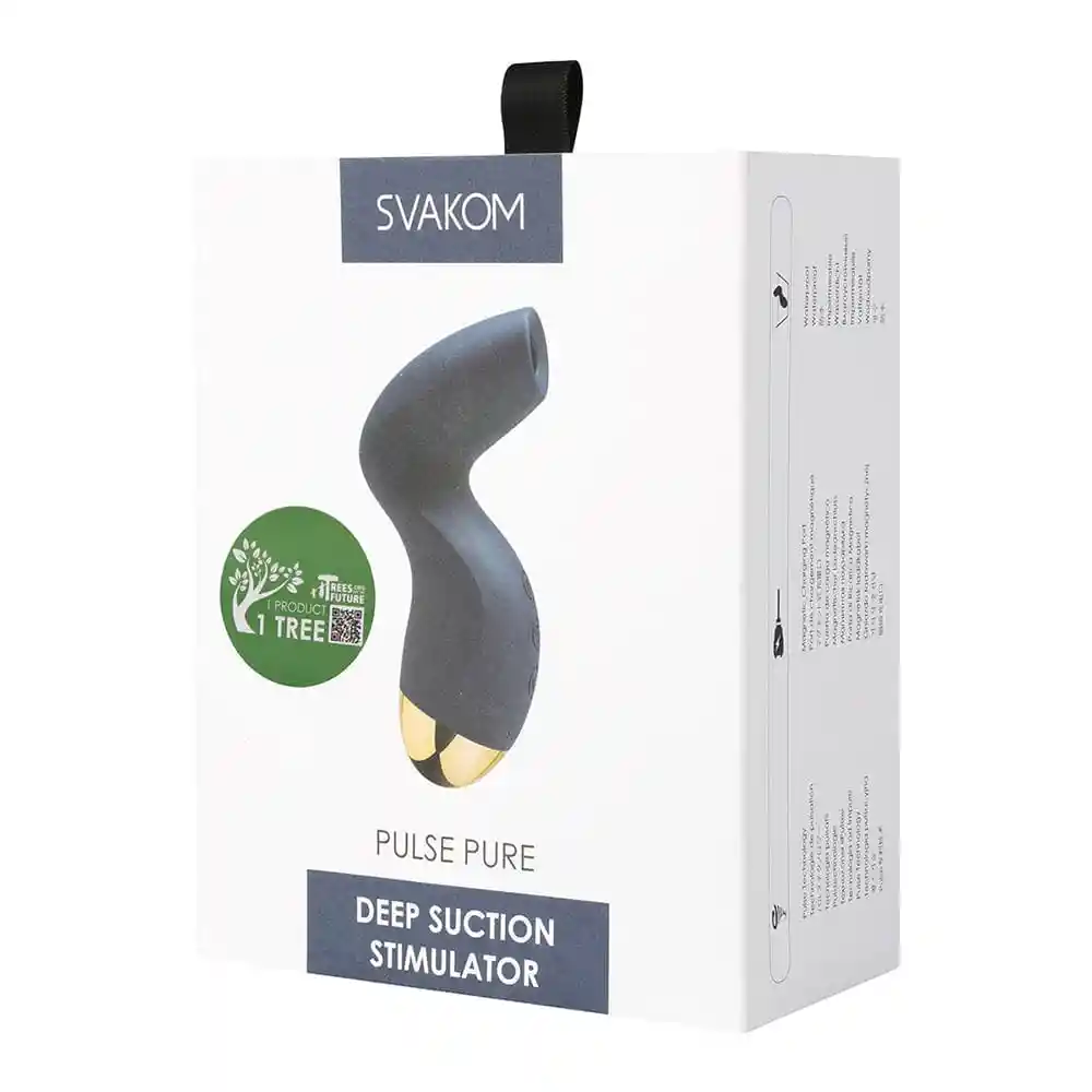 Svakom Presentación • 5 modos de succión • 5 niveles de intensidad Material: Silicona grado médico + ABS con detalles cromados Medidas: 12,9 cm x 5,9 cm x 4,2 cm Peso 128.5 g Carga: Batería recargable por medio de cable USB con Pin Magnético (Adaptador de corriente no incluido) Tiempo de carga: 3 horas Tiempo de uso continuo: Hasta 4 horas Resistente al agua. Protege hasta 1 metro de profundidad por no más de 30 minutos Interactivo o Con App: No Recomendaciones de uso: Para una experiencia más placentera, es ideal que el uso de este juguete sea con lubricantes a base de agua. Recomendamos el Gel Lubricante Íntimo Natural Elixir. No se deben usar lubricantes de silicona con juguetes de silicona. Podrían sufrir daños irreversibles. Limpieza: Antes de usar el juguete por primera vez, y después de cada uso, este debe ser limpiado para reducir el riesgo de infecciones, mantener la higiene adecuada y evitar el deterioro rápido del juguete. Recomendamos un producto especial para limpieza óptima como los Limpiadores para Juguetes Elixir. Garantía: 1 año Género: Femenino