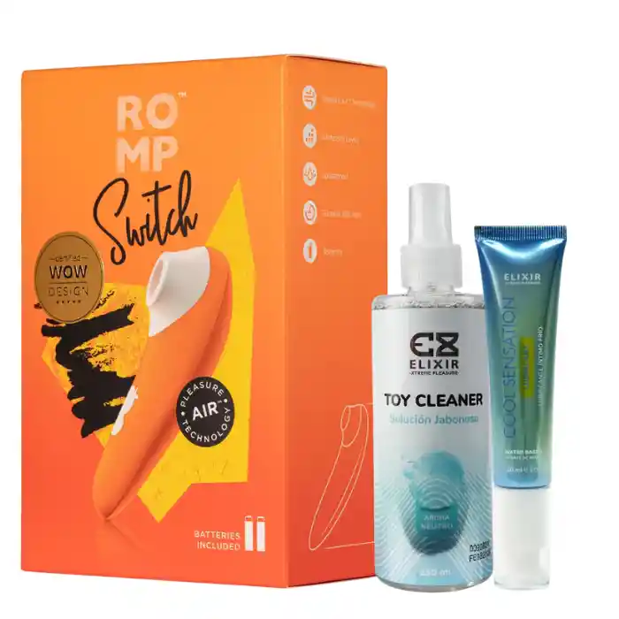 Una caricia suave, un fuerte orgasmo ROMP Switch – Succionador de Clítoris funciona con tecnología Pleasure Air, la cual, por medio de ondas de aire manda estímulos a su clítoris para saciarlo por completo. Cuenta con seis niveles de intensidad de suaves a potentes y su motor es silencioso para no dejar huella mientras disfruta plenamente. En 3,2,1 recibirá la sensación más indescriptible que haya soñado, ya que dura 300 minutos de manera continua. Es a prueba de salpicaduras, fácil de limpiar y el cabezal es extraíble. Funciona con dos Pilas AA que vienen incluidas. Carga 2 Pilas AAA (Incluidas) Contenido Succionador de clítoris Romp Switch + 2 Pilas AAA + Manual de instrucciones + Lubricante sachet 5 ml Material Silicona TPE + ABS, Cabeza en silicona suave, segura para el cuerpo, no tóxica Medidas 13, 2 cm x 4, 9 cm x 4, 4 cm Presentación • 6 niveles de intensidad • Tecnología Pleasure Aire ™ • Control por dos botones ¡Aroma único en tus juguetes íntimos! Diseñado especialmente para juguetes íntimos, cuida y preserva la silicona y demás materiales, proporcionando un mayor tiempo de vida útil a los mismos. Elixir fue desarrollado pensando en todas esas molestias ocasionadas por el mal lavado de los juguetes ¡Ya no queremos más siliconas porosas a causa del alcohol y otros agentes de jabones comunes! Permiten obtener un producto suave, de baja irritabilidad, que cumple con la normatividad establecida para productos detergentes y que ayuda a la limpieza completa de los juguetes. Para usarlo: Humedezca el juguete u objeto a limpiar. Aplique una cantidad suficiente del producto sobre una esponja o paño húmedo y frote por toda la superficie del juguete, enjuague con abundante agua. Repita el procedimiento si considera necesario. Marca Elixir Presentación 250 ML • Libre de parabenos, pH balanceado. • Registro Sanitario INVIMA: NSOH06655-18CO • Diseñado especialmente para juguetes íntimos, cuida y preserva la silicona y demás materiales, proporcionando un mayor tiempo de vida útil a los mismos. • Permite obtener un producto suave, de baja irritabilidad, que cumple con la normatividad establecida para productos detergentes y que ayuda a la limpieza completa de los juguetes. Descubre una nueva forma de sentir… con el Lubricante Íntimo Frío – Cool Sensation Diseñado para proporcionar una lubricación suave y efectiva, con una estimulante sensación de frescura. Mejora la comodidad, reduce la fricción y eleva el placer durante la actividad sexual. Adecuado para cualquier tipo de encuentro íntimo, también el uso con juguetes sexuales. Su textura ligera y deslizamiento natural generan una sensación placentera y de frescura. Para usarlo, aplica directamente sobre las zonas íntimas o tus juguetes, también es compatible con preservativos. Reaplica cuantas veces lo desees, manteniendo la lubricación y la sensación de frescura durante toda la experiencia. No mancha, tiene un sabor mentolado agradable y no deja sensación pegajosa en la piel. Efecto frío inmediato Suave y de larga duración No mancha ni deja residuos Apto para todo tipo de juegos íntimos contenido 30ml