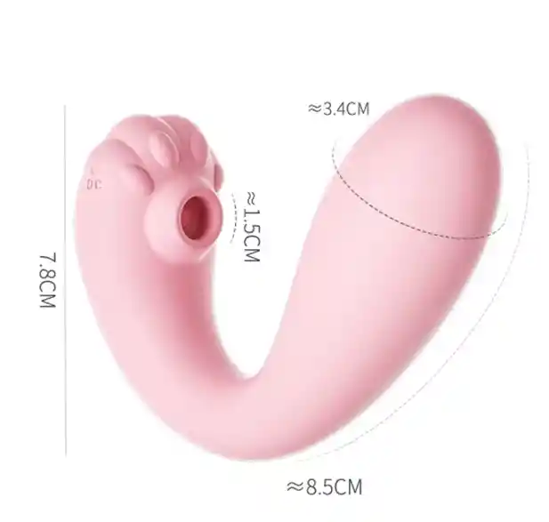 VIBRADOR Y SUCCIONADOR KITTY RECARGABLE Vibrador en Forma de U para proveer doble estimulación (Clitorial y Vaginal) • Alcanza tu punto G y Clítoris al mismo tiempo • SUCCION EN ZONA CLITORIAL • VIBRACION EN ZONA VAGINAL • Alcanza orgasmos espectaculares. • Silicona Medica super suave al tacto, apto para pieles sensibles • Batería Recargable hasta 2 horas de uso continuo