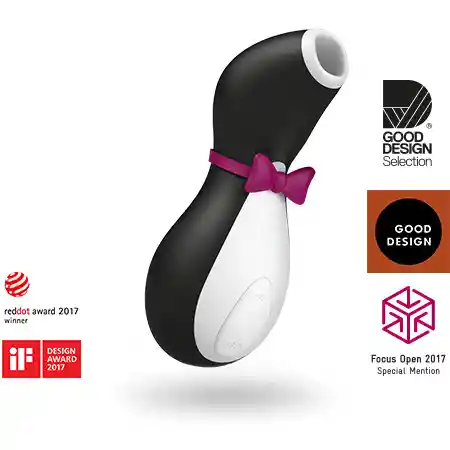 La nueva generación del Satisfyer Pro Penguin se ha puesto aún más elegante para ti. Ahora tiene un aspecto deslumbrante con su nuevo frac. Este gracioso pingüino se ha independizado: con su elegante cuerpo de color negro y su barriguita de color blanco, porta una distinguida pajarita y te espera para acompañarte a la ópera o para estimular tu clítoris sin tocarlo, lo que prefieras. ¿SALES CONMIGO ESTA NOCHE? Una cosa está clara, este dildo tiene un aspecto tan maravilloso que da pena esconderlo en el cajón de tus objetos favoritos. Gracias a su motor mejorado y aún más silencioso, esto no representa ya ningún problema: En cuanto el cabezal de silicona antialergénica rodea tu clítoris, apenas se oye nada. Gracias al acabado resistente al agua de la nueva generación del Satisfyer Pro Penguin puedes incluso disfrutar de este pequeño pingüino dentro de la bañera, donde permanece aún más silencioso y tus sensaciones ganan en intensidad. Sus 11 programas de ondas de presión te estimulan a lo largo de una escala desde suave hasta intenso, consiguiendo así que te olvides del mundo. El diseño optimizado de los botones te permite avanzar y retroceder entre niveles de intensidad para que disfrutes de un placer individual y adecuado a cada momento. Además, la luz del panel de mando de tu dildo favorito ya no es tan intensa y, por tanto, es más agradable.