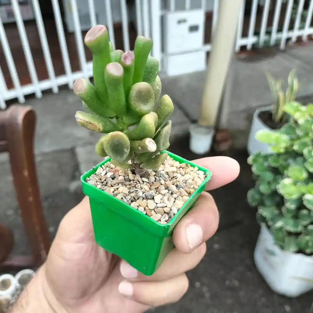 Características: Tiene hojas tubulares con puntas en forma de ventosa que pueden adquirir tonos rojizos al sol. Cuidados: Requiere riego moderado, solo cuando el sustrato esté completamente seco, y suelo con excelente drenaje. Iluminación: Prefiere luz solar directa o filtrada durante al menos 3 a 6 horas diarias para mantener su forma y color.
