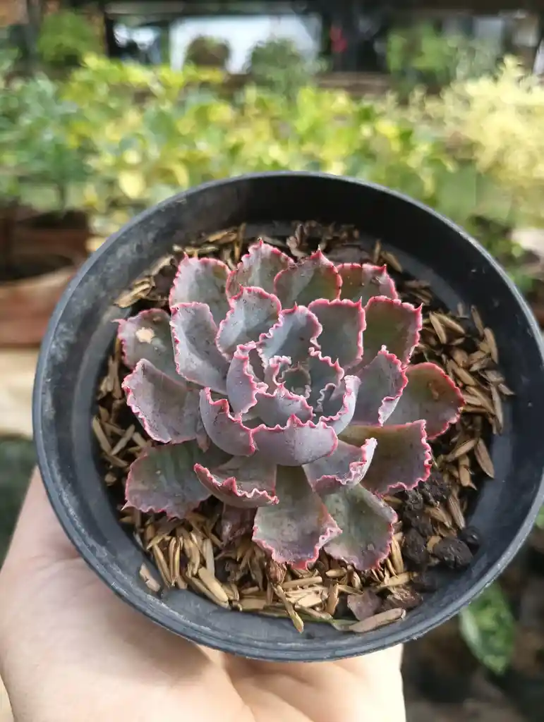 Necesita luz brillante para mantener su color y forma. Asegúrese de no exponerla al sol directo durante largos períodos, especialmente en verano. Riegue la planta cuando la tierra esté completamente seca. Esta suculenta es resistente a la sequía y no tolera el exceso de agua.