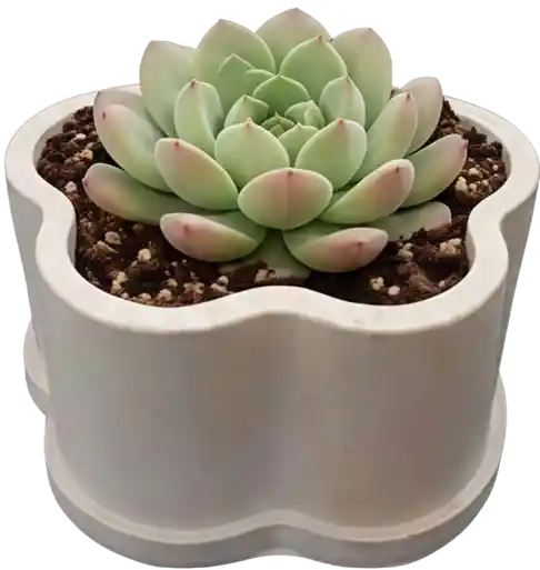 Un detalle lleno de vida y encanto natural. Esta suculenta, símbolo de resistencia y frescura, reposa en una matera de concreto inspirada en la delicada silueta de una flor en apertura. Su diseño artesanal de pétalos curvos y líneas suaves está pensado para abrazar la naturaleza, aportando armonía, luz y un toque de sofisticación a cualquier espacio. Es la pieza ideal para regalar vida en momentos especiales o para convertir tu escritorio en un pequeño santuario de paz y equilibrio. Nota: Ten en cuenta que, al ser un producto natural y artesanal, la especie de la suculenta y el matiz del color pueden variar según la disponibilidad, haciendo que cada pieza sea única.
