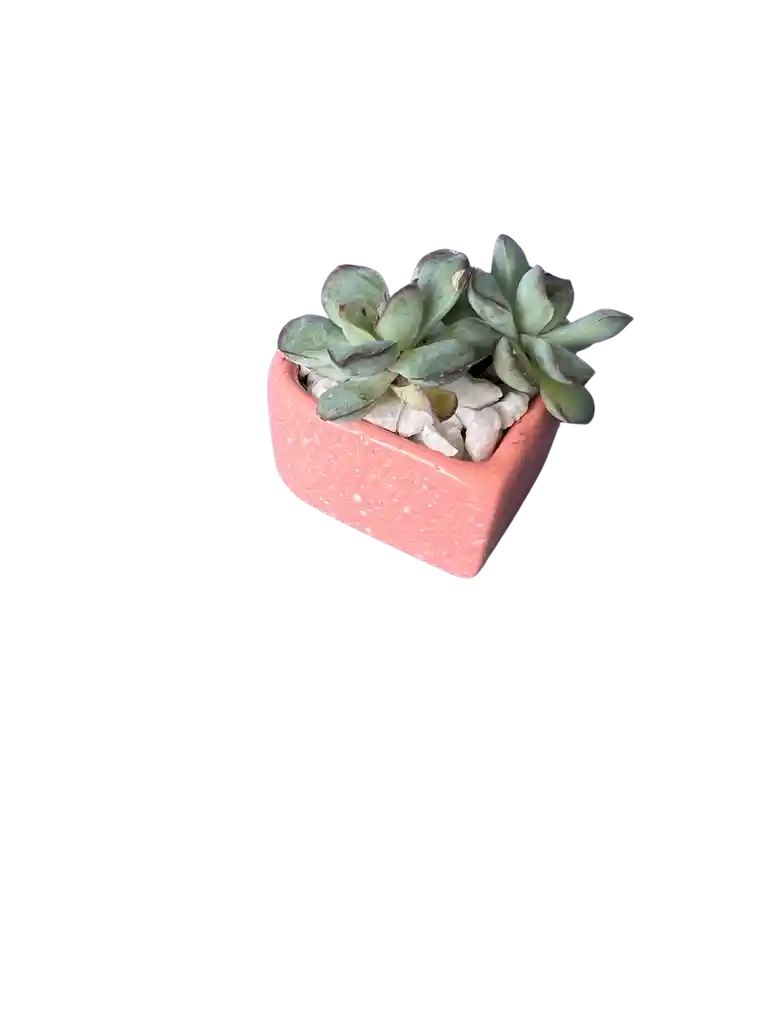 Hermosa Suculenta en matera color rosada en forma de corazon!!
