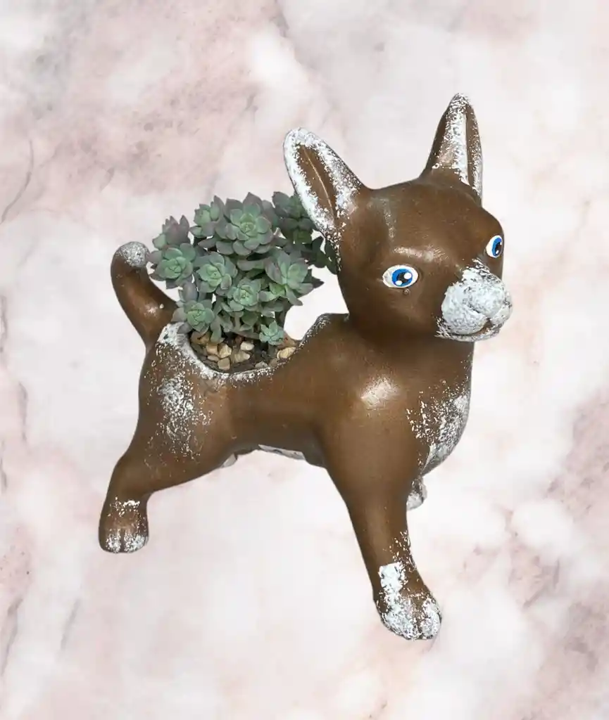 Esta suculenta es perfecta para decorar cualquier espacio y darle un toque natural y de color, ademas de su facil cuidado ya que en sus hojas almacena el agua y se adapta facilmente a cualquier espacio. Viene en matera de cerámica de perrito café