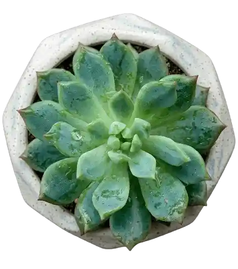 Suculenta en maceta esférica geo con un diseño único y moderno, perfecta para decorar o regalar un detalle original que combine naturaleza y estilo, ideal para sorprender en cualquier ocasión el color de la maceta y el tipo de suculenta varían según disponibilidad.