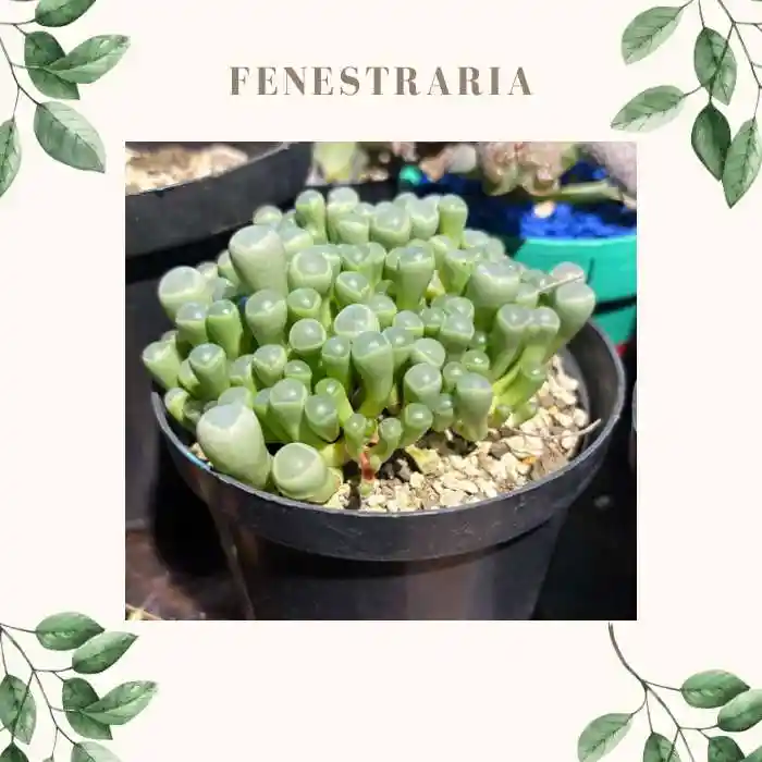Planta exótica con hojas gruesas y gordas en forma de dedo, color grisáceo y verde. Debe situarse en un lugar muy iluminado y ventilado. El riego se debe aplicar cada 20-30días *Esta es una imagen real de muestra, las plantas pueden variar su apariencia, ya que todas las plantas son diferentes