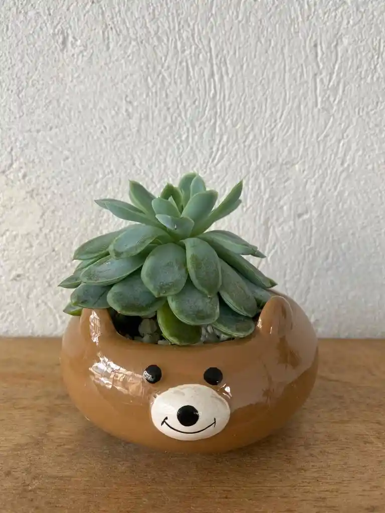 Bella Suculenta sembrada en una cerámica esmaltada en figura de Escandaloso Pardo