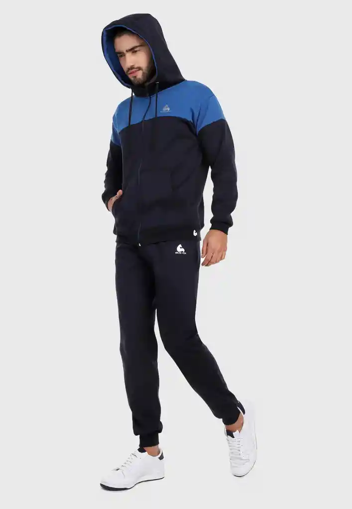 La sudadera para hombre conjunto chaqueta hoodie azul corte americano está elaborada en suave algodón perchado.La chaqueta hoodie azul rey y azul obscuro con rib azul en cintura y puños para mejorar el ajuste. tiene dos bolsillos internos. accesorio muy útil para guardar el celular y otros objetos.