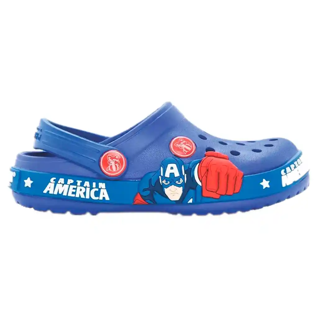 Estos hermosos y modernos Suecos le brindaran a tu hijo comodidad durante todo el día, ya que cuenta con un fabuloso diseño con pequeños orificios que facilitan la circulación del aire, manteniendo los pies frescos y ventilados. Además tiene una suela que le brinda estabilidad y resistencia a donde quiera que vaya, y lo mejor es que tiene estampado de su personaje favorito ¡Sorprende a tu pequeño y anímate a llevarlos ahora! Modelo: CAPITAN AMERICA Marca: MARVEL Género: Niño Tipo: Suecos Material: Sintético Material de la suela: Sintético Horma: Normal Curva de tallas desde la 24 hasta la 35, luego de la compra confírmanos la talla de tu elección.