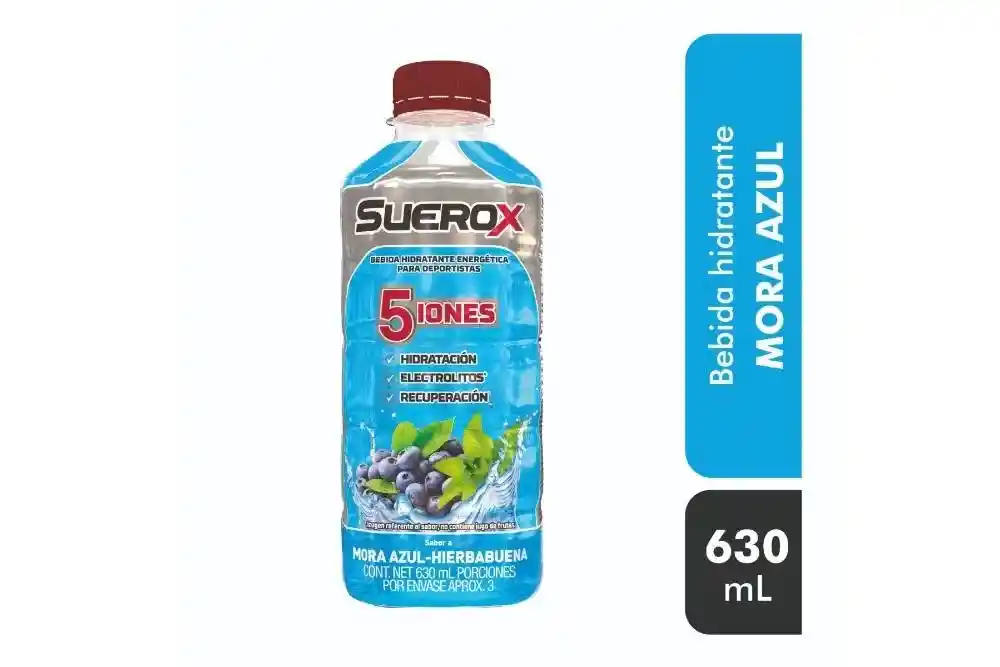Suerox es una bebida hidratante funcional, sin azúcar y baja en calorías, diseñada para reponer electrolitos (sodio, magnesio, calcio, potasio y cloruro) perdidos por sudoración, ejercicio o calor. Contiene iones esenciales que ayudan a la rehidratación y se encuentra disponible en varios sabores como mora azul, frutos rojos y manzana.