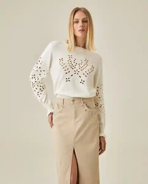 Cuello Redondo en Acrílico 55% y Algodón 45%. Incrustación Ojales Bordados Con Motivos Florales en Cuerpo y Mangas. Tejido Jersey. Puños Con Ruches. Acabados Trabajados en Cuello y Puños. Construcción Con Ojales Bordados Artesanales. Silueta Regular Romántica. Ean- 791H004Cru110103 Plu- 1111133255959.