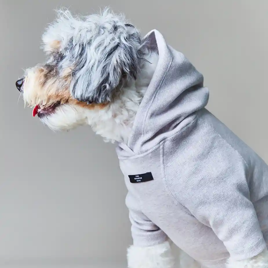 Suéter gris claro con capucha y manga 3/4 en rib. Medidas: Cuello 30 cm Largo espalda 30 cm Pecho 39 cm