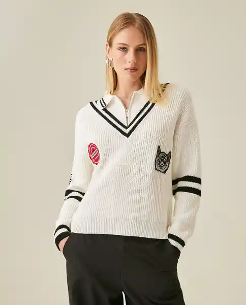 Punto Inglés Silueta Bomber Cuello Polo Media Perilla Cierre Metálico en Algodón 100%. Tejido Punto Inglés Pesado. Apliques Bordados Distribuidos en Frente y Mangas. Rayas en Contraste. Diseño Prenda Sobre Prenda. Galga Media. Placa Metálica Chevignon en Parte Superior de Espalda. Look Universitario Varsity. Construcción Bomber Con Apliques. Silueta Bomber Estructurada. Ean- 791H001Cru110103 Plu- 1111133255669.