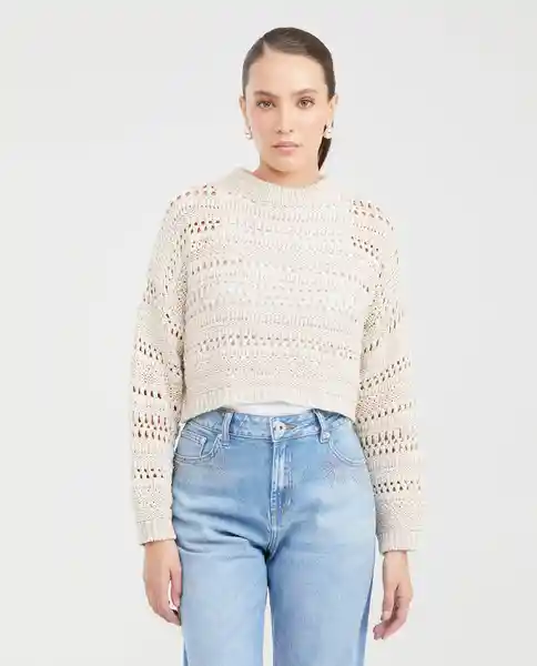 Tejido Para Mujer, Silueta Amplia, Largo Crop (A la Cintura).Diseño Con Cuello Redondo Grueso y Manga Larga Con Sisa Desplazada.Propuesta en Tejido Artesanal Tipo Red Con Efecto de Nudos en el Cuerpo y Las Mangas, y Tejido Acanalado en el Cuello, Los Puños y el Fajón.Elaborado en Fibra 100% Algodón.Tipo de Tejido: Grueso. Ean - 791G007CRU110103 PLU- 1111133089141.