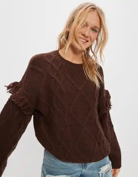 Los Detalles de Punto y Flecos Hacen Que Este Sea el Mejor Suéter Jamás Hecho. Cálido Tejido de Cable Manga Larga Cuello Redondo Detalle de Flecos Style: 1341-9858 90% Acrílico 5% Poliéster 5% Nylon.