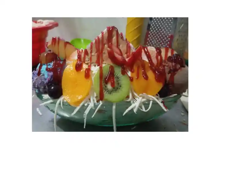 Deliciosa ensalada de frutas con tres sabores de helado crema queso y variedad en frutas