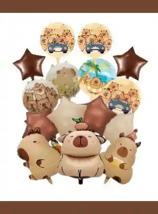 Descripción: Decora tu celebración con este adorable set de globos temáticos de capibaras. Incluye figuras inflables en forma de capibara, globos redondos con estampados tiernos y estrellas metálicas que darán un toque único a tu fiesta. Perfecto para cumpleaños, eventos infantiles o para cualquier amante de estos simpáticos animalitos. ¡Crea un ambiente alegre y memorable con esta decoración original! En Total Vienen 15 Globos Metalizados. Tener en Cuenta: •Los Globos se envían Desinflados •Se pueden inflar con aire normal o Helio •Ofrecemos servicio de Inflado con Helio por separado.