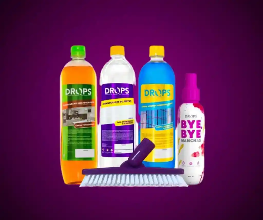 Productos de limpieza especializados con fórmulas concentradas Este Kit contiene: 1 Quitamanchas Bye Bye Manchas 1 Desmanchador de Juntas 1 Desengrasante Multipropósito 1 Limpiavidrios fórmula concentrada 1 Cepillo de fragua abatible Mantendrás tu hogar limpio, desinfectado y reluciente gracias al super kit de Drops.