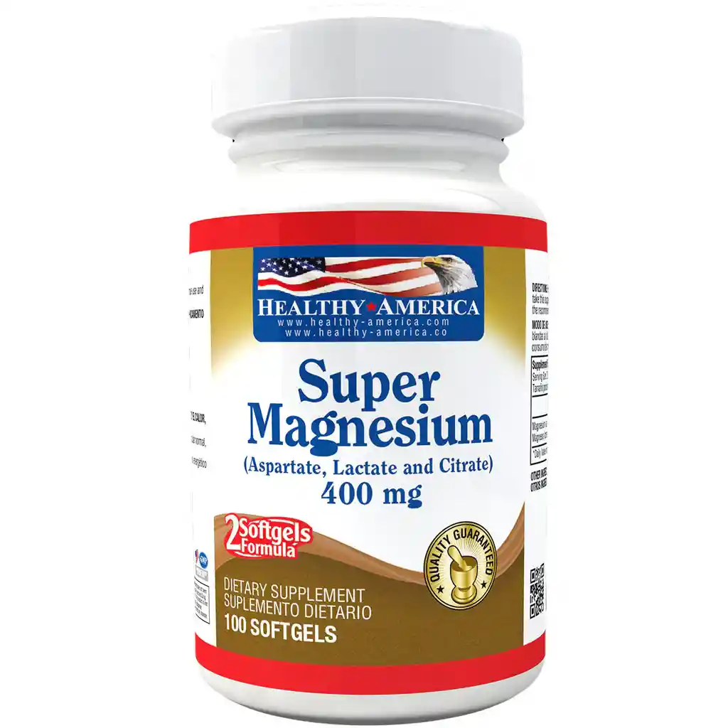 Super Magnesium Formula 400 Mg (magnesium Citrate, Aspartate, And Lactate) X100 Softgels Healthy America