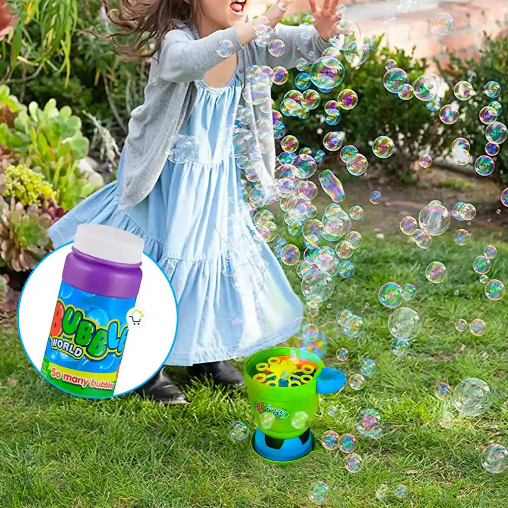 Material: Plástico. Tamaño aprox. producto: 18 x 18 x 14 cm. Peso empaque: 310 g. Funcionamiento: 4 baterías AA (No incluidas) Incluye líquido para hacer burbujas de 118 ml. La máquina soplará cientos de burbujas al instante con sólo oprimir un botón. Obtienes toneladas de burbujas para deleitar a tus niños y niñas. Esto hace que la máquina de burbujas sea el juguete perfecto para el cumpleaños de tus niños y cualquier reunión al aire libre. Todos los niños están encantados de sacarlo afuera y correr en toneladas de burbujas que durarán por mucho tiempo mara mayor diversión. El diseño sin derrames hace que esta sea la máquina de burbujas perfecta para niños, gracias su plato inferior solamente tendrás que retirarlo y volver a colocar el líquido de burbujas en el recipiente para no desperdiciar ni una gota. Contenido del Paquete 1 Máquina para hacer burbujas. 1 Líquido para burbujas. 100% Nueva