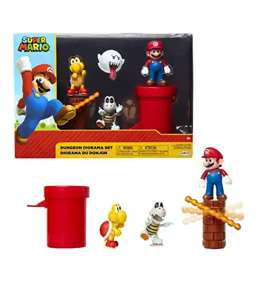 Características Mario, Koopa Troopa, huesos secos cuentan con accesorios: tubo de deformación rojo y molino de viento de bola de fuego, figuras coleccionables icónicas y piezas de accesorios. El embalaje exclusivo de Diorama es ideal para mostrar y jugar. Estos auténticos juegos de regalo de 5 figuras seguro que complacerán a los niños y coleccionistas por igual. Colecciónalos todos. A partir de 3 años.