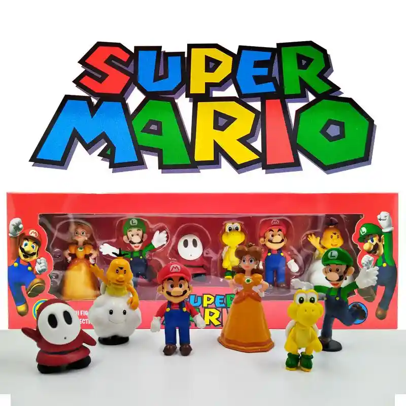 COLECCION X6 FIGURAS DE SUPER MARIO Si eres un verdadero aficionado de esta serie legendaria. no te puedes quedar sin esta espectacular colección de 6 figuras muy bien detalladas y elaboradas con finos materiales. Los juguetes siempre han desempeñado un papel importante en la vida de los niños, siempre considerando los gustos y deseos de los más pequeños de la casa y no tan pequeños, procurando dar la mejor de las sorpresas y ganarse esa sonrisa incomparable que los llena de felicidad. Material: Resina Plástica Medidas Empaque: 9 cm de Alto x 28 cm de Largo x 7 cm de Ancho. Medidas figuras: Entre 3 y 6.5 cm de Alto. varia entre cada figura.