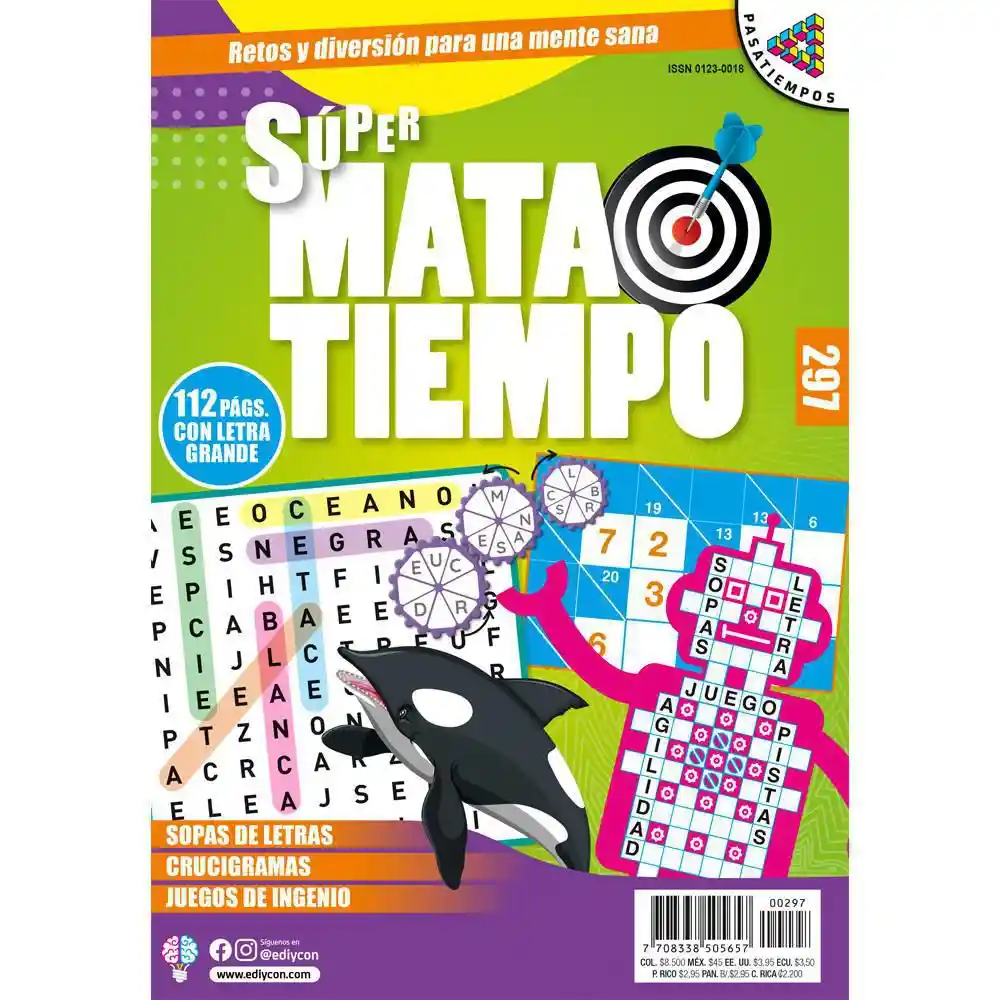 Ficha Técnica: Marca: Comunican Modelo: Revista Super Mata Tiempo Comunican X1 Und Tipo de Producto: Revista Cantidad: 1 und Unidades por paquete: 1 Características de la Revista Super Mata Tiempo Comunican X1 Und ¡Entretenimiento para ti! Sopas de letras, crucigramas, cruzadas y juegos. Encuentra 112 páginas de mucha diversión.