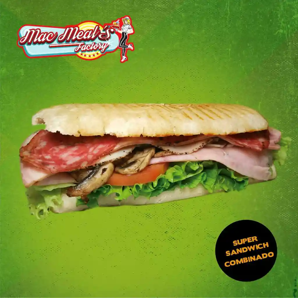 PAN, PERNIL DE CERDO AHUMADO, JAMON DE CERDO CARAMELIZADO, QUESO MOZARELLA, LECHUGA Y TOMATE