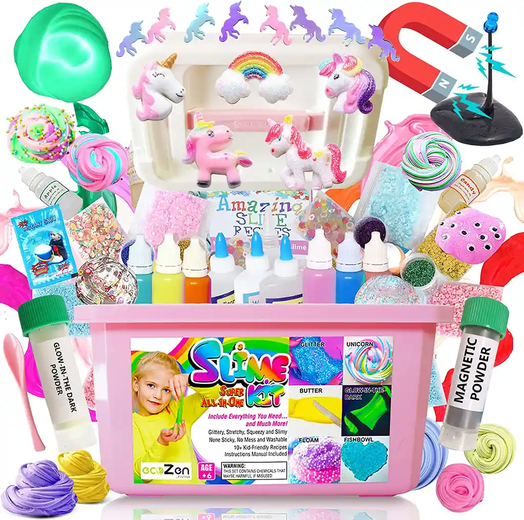 ✅ Suministros de slime de mejor valor. Imagina que no tienes que ir buscando todas las cosas diferentes para hacer slime. Este paquete contiene todo lo que necesitas y más para hacer toneladas y toneladas de varios tus propios slimes. De hecho, cientos de clientes satisfechos encuentran nuestros suministros de slime súper rentables, con alto rendimiento por un dinero bajo ✅ Kit de fabricación de slime 100% a prueba de fallos. El problema con otros kits de suministros de slime es que el resultado final es agua, torcido, grumoso y pegajoso o incluso se vuelve mohoso. Nuestros científicos locos de slime prueban ampliamente los ingredientes, hacen instrucciones a todo color para niños y vienen con un kit de slime 100% a prueba de fallos para que obtengas consistencia correcta cada vez. Experimenta el slime como en Youtube. Gran variedad y ingredientes de calidad para personalizar el color, mejorar el olor, cambiar la textura y añadir componentes a tus slimes únicos. Puedes hacer infinitos tipos de slime: flotante, nube, esponjoso, arcoíris, mantequilla, purpurina, crujiente, slime de unicornio... lo que sea. Obtenemos toda la cubierta y mucho más. ✅ Paquete fuerte y entrega rápida. El problema con otros juegos de slime es que faltan instrucciones y fugas durante la entrega. Cada uno de nuestros paquetes interiores está sellado de forma segura y bien embalado. para evitar derrames y fugas. La funda es bonita y está hecha de plástico duradero que protege los componentes interiores. Nuestros ingredientes son lavables y no manchan ni dañan tu ropa Ocupa a los niños durante horas. Los niños y los padres pueden disfrutar de la diversión pegajosa juntos, apretar el slime, estirarlo, pinchar, remolinar, dejar que gotee. Proyecto multisensorial perfecto para fomentar la creatividad, mejorar la habilidad motriz y divertirse mucho durante horas. Solo tienes que pedirlo ahora sin riesgos.