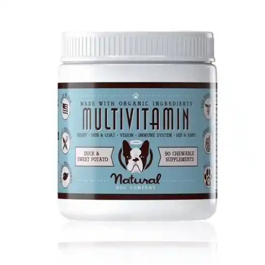 Complementa la dieta de tu peludo con este increíble suplemento .Es totalmente natural, seguro y aprobado por veterinarios, para peludos de todas las edades, tamaños y razas. Contiene 35 vitaminas, minerales y nutrientes esenciales para complementar la alimentación diaria de nuestro peludo. Fortalece el sistema inmunológico, lo que ayudara a tener una vida más sana y equilibrada desde cachorros y a fortalecer sus defensas en la vida adulta. Viene en presentación de tarro de 90 Nuggets masticables, que debes darle a diario dependiendo del peso de tu peludo. ¡Le encantarán! Además, ayuda a mantener una vida saludable pues ayuda con el corazón, el sistema digestivo, la piel y el pelo y los huesos. Su fórmula es sin cereales, soja, ni maíz y trae propiedades antiinflamatorias, antioxidantes y estimulantes para el sistema inmunológico. MODO DE USO Se debe tomar dependiendo del peso de tu peludo 0 a 11 kilos = 1 nugget diario 11 a 35 kilos= 2 nuggets diarios 35 kilos y más= 3 nuggets diarios INGREDIENTES Los ingredientes son orgánicos y están mezclados con nutrientes esenciales. Estos suplementos son deliciosos, potentes y seguros para peludos de todas las razas y tamaños.· Cúrcuma orgánica | Antiinflamatoria y antioxidante · Mezcla de vitaminas y minerales | Promueve la salud y el bienestar en general: reduce la inflamación, regula los niveles de energía, mejora el equilibrio hormonal, apoya una digestión saludable, mejora la función inmunológica y celular · Semilla de cáñamo orgánico | Rico en ácidos grasos esenciales, alto en proteínas · Aceite de hígado de bacalao | Alto contenido de ácidos grasos omega-3, promueve una piel y un pelaje saludables, alivia los síntomas de la artritis · Coenzima Q10 | Antioxidante, favorece la salud del sistema cardiovascular. Mezcla de enzimas digestivas | Ayuda a descomponer los nutrientes para una mejor absorción. · Ingredientes esenciales restantes: vitamina C (ácido ascórbico), curcuminoide, niacina, vitamina B1, ácido pantoténico, vitamina B6, vitamina B2, ácido fólico, biotina, vitamina B12, vitamina A, vitamina D3, vitamina E, pato, batata, coco Aceite, Harina de Guisante, Aceite de Fruto de Palma, Harina de Linaza, Harina de Garbanzo, Pato Prosurance / Guisante, Celulosa en Polvo, Lecitina de Girasol, Glicerina de Coco, Ácido Sórbico, Extracto de Romero, Tocoferoles Mixtos