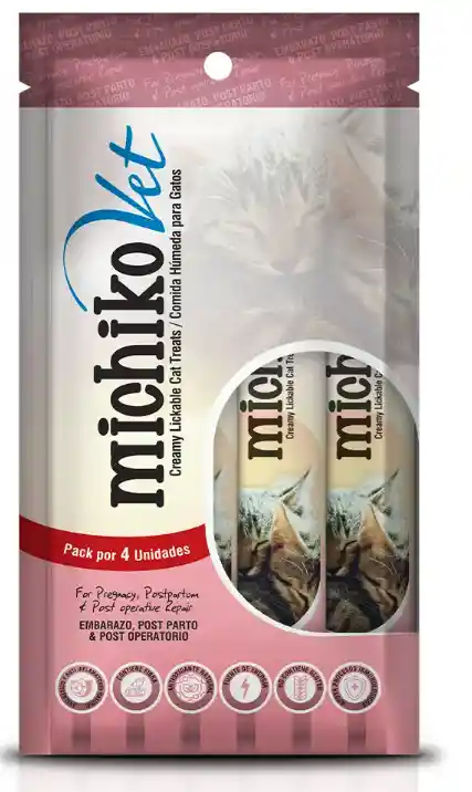 Suplemento nutricional para gato Michiko vet embarazo, post parto y post operatorio brinda apoyo nutricional en etapas de alta demanda. Aporta vitaminas y minerales que ayudan a mantener la condición corporal, fortalecer defensas y favorecer la recuperación tras cirugía o lactancia. Su administración diaria, junto con una dieta balanceada y control veterinario, contribuye al bienestar integral de la gata.