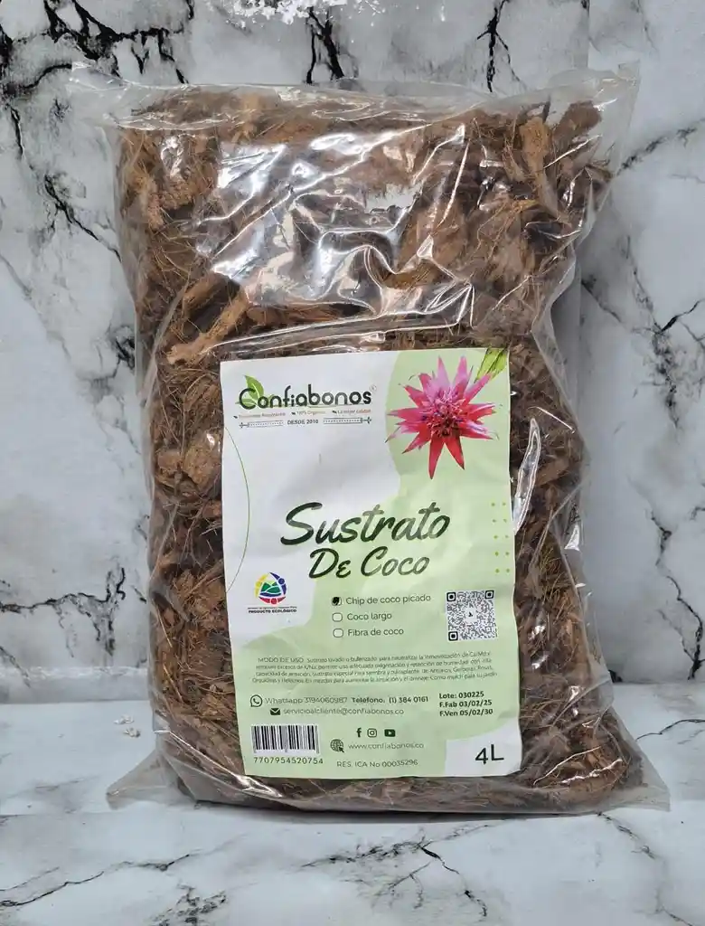 SUSTRATO DE COCO MARCA CONFIABONOS, UTILIZADO PARA RETENCION DE HUMEDAD Y ALTA CAPACIDAD DE AIREACION, ESPECIAL PARA ANTURIOS, GERBERAS, ROSAS ORQUIDEAS Y HELECHOS