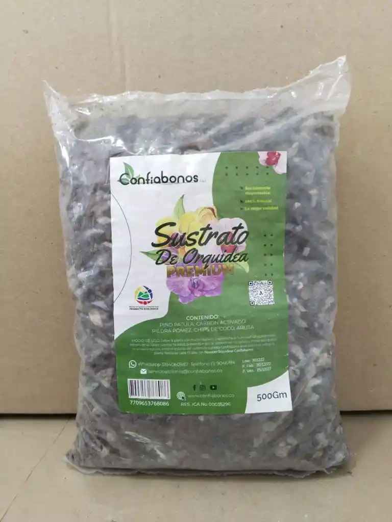 Sustrato específico para la siembra de orquídeas sus componentes son: pino patula piedra pómez chip de coco picado arlita carbón activado Sus componentes ofrecen los siguientes beneficios: La corteza de pino y el chip de coco picado son la base del sustrato y ayudan a dar a la mezcla un nivel adecuado de acidez y específicamente el coco picado tiene la misión de almacenar agua para proporcionar a la planta la humedad que necesita de forma sostenida. La arlita permite que el sustrato esté más ventilado. El carbón vegetal aumenta el nivel de pH del sustrato. La piedra pómez sirve para que la mezcla retenga sus sales nutritivas. Modo de uso: Extraer la planta con mucho cuidado y aprovecha la humedad del sustrato para retirarlo de las raíces con más facilidad, poniendo especial atención en no dañarlas. Sembrar la orquídea en la nueva maceta, adicionar el resto del sustrato Confiabonos para orquídeas y riega la planta. Fertilizar cada 15 dias con Florecer Orquideas Confiabonos.
