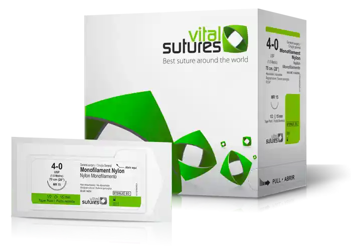 Nylon Monofilamento: sutura sintética no absorbible compuesta de un polímero de poliamida que cuenta con gran elasticidad, alta resistencia tensil, elongación controlada y que produce una reacción tisular extremadamente baja. Esta sutura sintética no absorbible propicia una cicatrización perfecta por su suave paso a través de los tejidos y por sus propiedades físicas y fisiológicas.