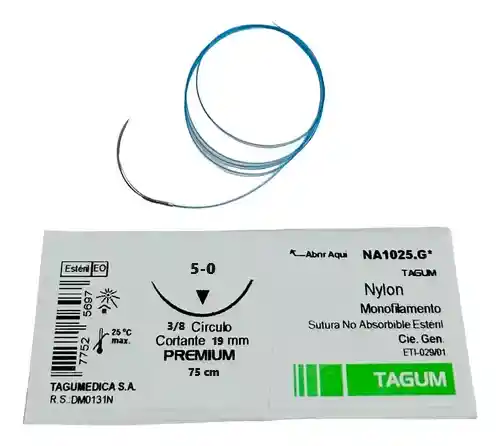 Sutura Nylon No absorbible 5 - 0 Esteril. Con registro invima. *Nota: Imagenes de referencia, el producto puede variar ligeramente en tono de color y contramarcaciones.
