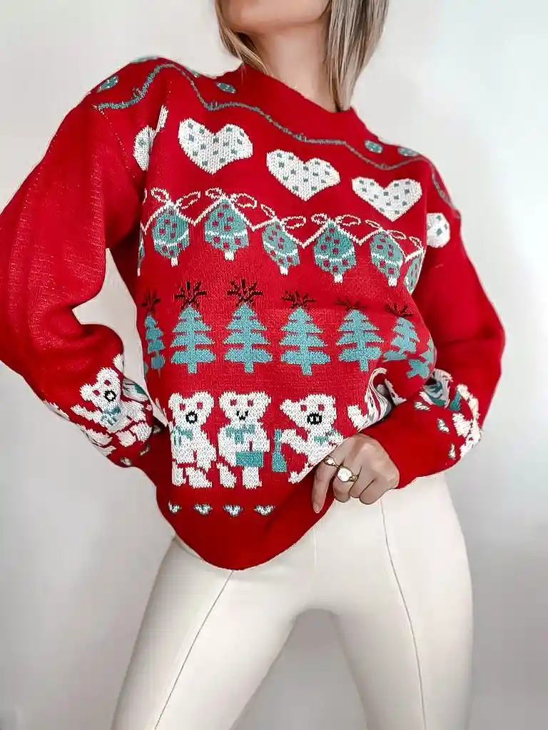 Saco rojo tejido especial navideño, cuello redondo, Ideal para talla S,M o L, Perfecto para clima frio o templado.