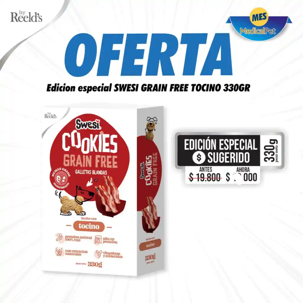 Galletas blandas libres de granos, ideales para perros con sensibilidades alimentarias. ofrecen una variedad de beneficios para la salud de tu mascota.Swesi Cookies ayuda a mejorar la digestión, eliminar toxinas, regular el pH y promover una salud oral óptima.