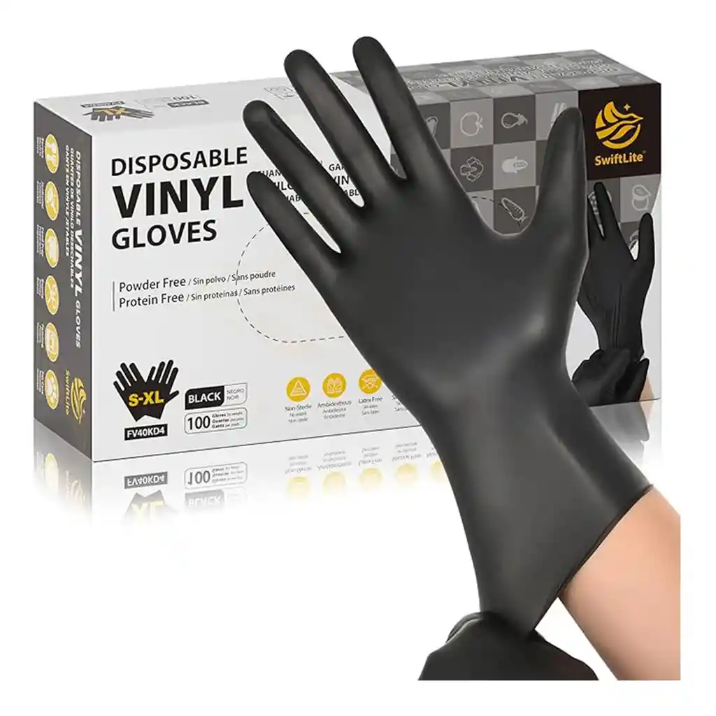 Los SwiftLife Guantes de Vinilo Negro Talla S ofrecen protección segura, cómoda y libre de látex para manos sensibles. Su diseño sin polvo evita irritaciones y contaminaciones cruzadas, ideal para uso alimenticio, limpieza y manipulación de productos delicados. Fabricados con material resistente, garantizan alta durabilidad y flexibilidad para un ajuste perfecto. Son una opción práctica e higiénica tanto para cocinas profesionales como para tareas domésticas, manteniendo tus manos limpias, protegidas y libres de alérgenos mientras trabajas con confianza y comodidad.