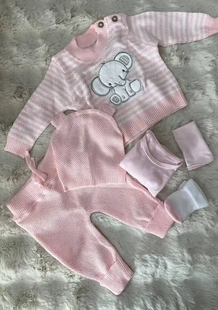 - "T. 0-3M - Conjunto de Hilo con Elefante: Delicado conjunto de ropa para bebé de 0 a 3 meses, con un adorable diseño de elefante. Suave y cómodo, ideal para los primeros meses del recién nacido." - Referencia: 00126