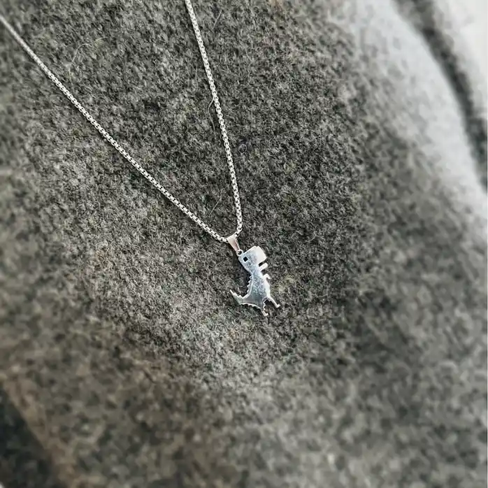 Añade un toque audaz y divertido a tu look con el collar T-REX Plateado. Este diseño cuenta con una cadena larga de acero inoxidable y un dije de dinosaurio T-Rex con un acabado pulido que le da un brillo único. Ideal para quienes buscan una pieza distintiva que destaque, su cadena de 69 cm lo convierte en el accesorio perfecto para cualquier ocasión. Además, su material es resistente y no se oxida, garantizando durabilidad y estilo.