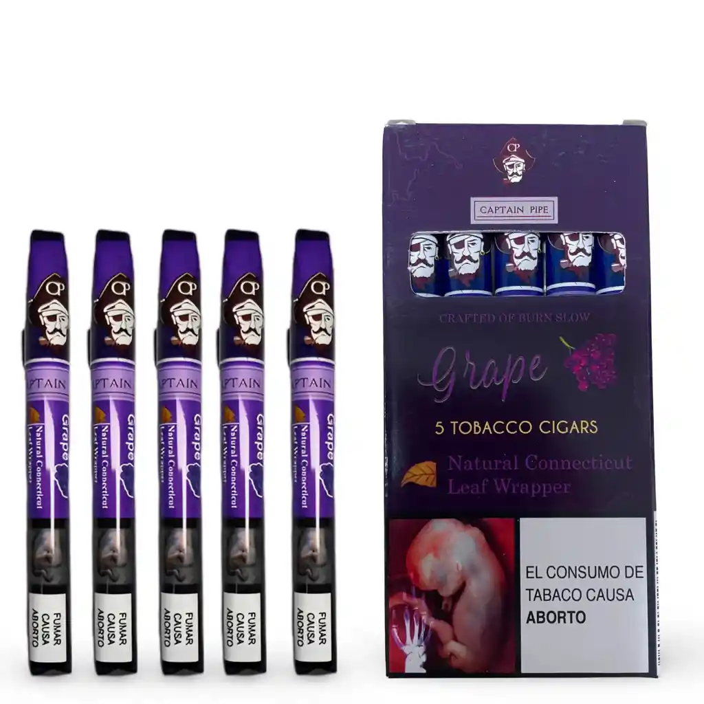 Captain pipe de uva son de un sabor y aroma que encantan. El tabaco es nocivo para la salud. Ley 30 de 1986. Verificar condiciones de uso, indicaciones y contraindicaciones en la etiqueta. Prohibida la venta a menores de edad
