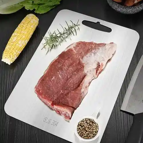 Se trata de una tabla de cortar, que está hecha de materiales de alta calidad, lo suficientemente resistentes y saludables para su uso. El asa para colgar hace que esta tabla de cortar sea cómoda de guardar. Con esta tabla de cortar de doble cara, no es necesario comprar dos tablas para cortar y cocinar los alimentos por separado. Características -Material: acero inoxidable. - Los materiales de alta calidad y la fina mano de obra hacen que sea duradera y se pueda utilizar durante mucho tiempo. - El mango para colgar hace que esta tabla de cortar sea cómoda de guardar. - La suave tabla de cortar es segura y cómoda de limpiar. - Apta para la cocina del hogar, el restaurante, el hotel y otros lugares. - Con esta tabla de cortar de doble cara, no tienes que comprar dos tablas para cortar y los alimentos se cocinan por separado. El paquete incluye: 1 tabla de cortar.