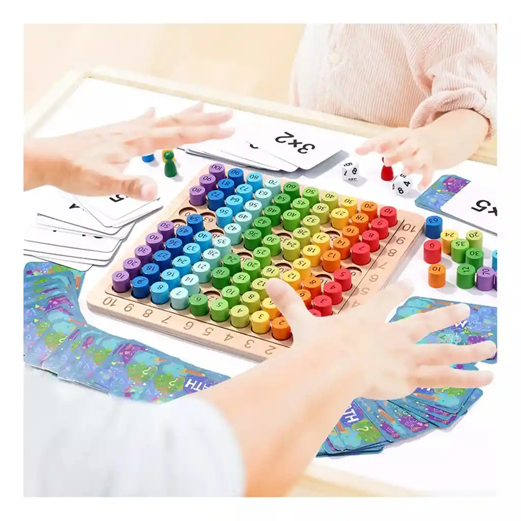 ✅️Encuentra conexión entre números y símbolos de operación, mejora la capacidad de resolución de problemas y la capacidad de iluminación aritmética. ¡Facilita el aprendizaje de la multiplicación! Deje que sus hijos aprendan la tabla de multiplicar nueve veces de una manera divertida. Aprenden , fortalecen la comprensión matemática básica y mejoran el rendimiento matemático. ✅️¡Tabla de multiplicar para aprender números, aritmética, aprender colores! Es una buena herramienta para la educación temprana para cultivar el pensamiento espacial de los niños y mejorar las habilidades motoras finas. Nuestro juego de mesa de multiplicación de madera se puede utilizar como un juguete intelectual de aprendizaje de matemáticas, adecuado para el hogar, la escuela, centro de matemáticas, aula, escuela primaria etc. ✅️𝗝𝗨𝗘𝗚𝗢 𝟭: Tira 2 dados y multiplica los 2 números en la superficie, y el que encuentre la respuesta primero y use la puntuación, la mayoría de los puntos, es el ganador. ✅️𝗝𝗨𝗘𝗚𝗢 𝟮: Dibuja la tarjeta de multiplicación y encuentra rápidamente la respuesta en el tablero de multiplicación, usa la puntuación, el lado ganador gana una tarjeta, hay 100 tarjetas en total, quien obtiene más tarjetas es el ganador (2-4 jugadores pueden jugar).