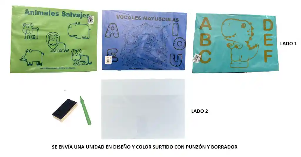 Tabla De Picado Diseño Surtido Grande Medidas: 34 X 24 Cm Aproximadamente Incluye Punzón y borrador