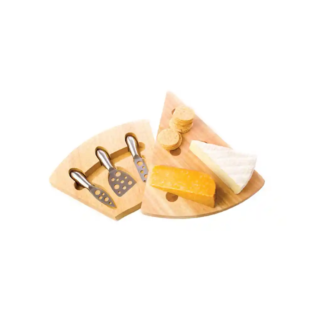 Esta tabla de queso y set de cuchillos viene con una bandeja que contiene tres cuchillos para queso fabricados en acero inoxidable. Un cuchillo para esparcir el queso y dos rectangulares rebanar. Regalos originales. Regalos funcionales. Regalos divertidos