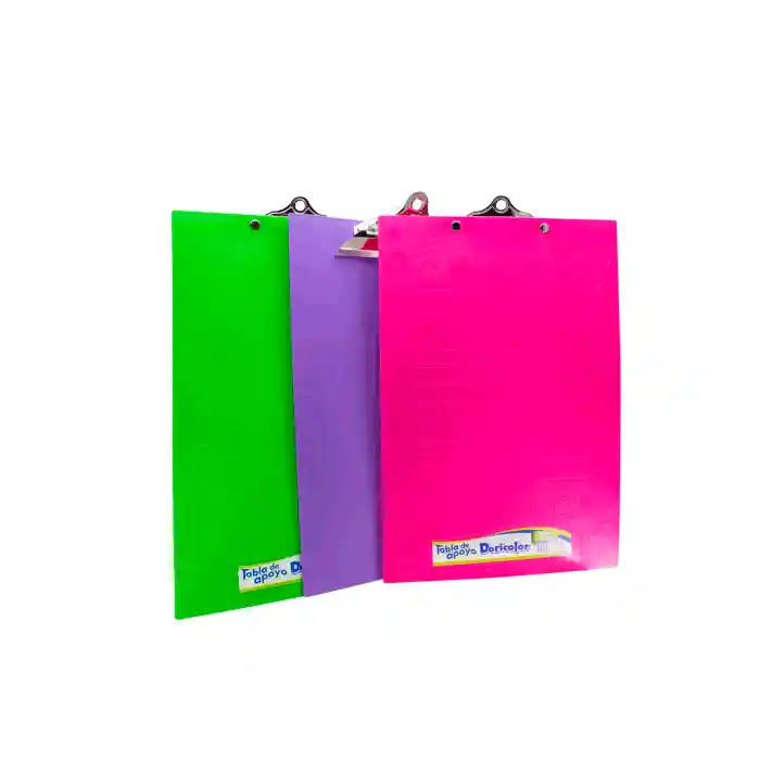 - Tabla de plástico indeformable Gancho metálico con superficie cromada Alta resistencia a golpes y caídas - Colores surtidos - Medidas: 35.6 X 23.5 X 4.5 Cms - Peso: 244 gramos