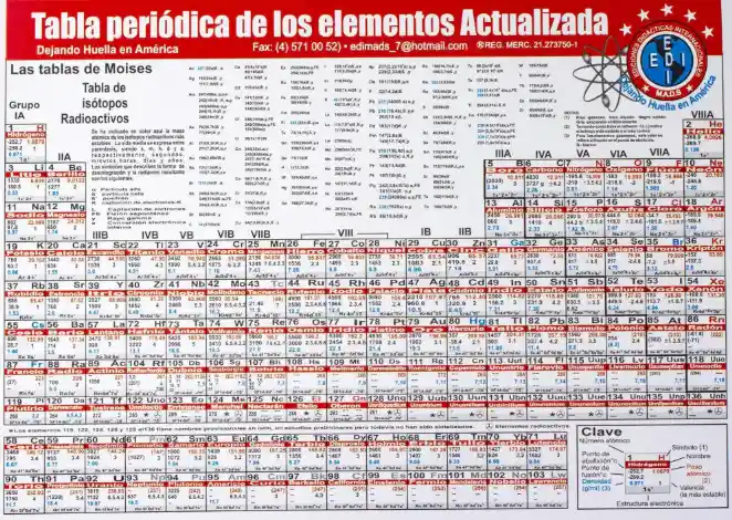 Tabla Periódica de los elementos. TRAE INFORMACION POR AMBAS CARAS tamaño 17x12 cm