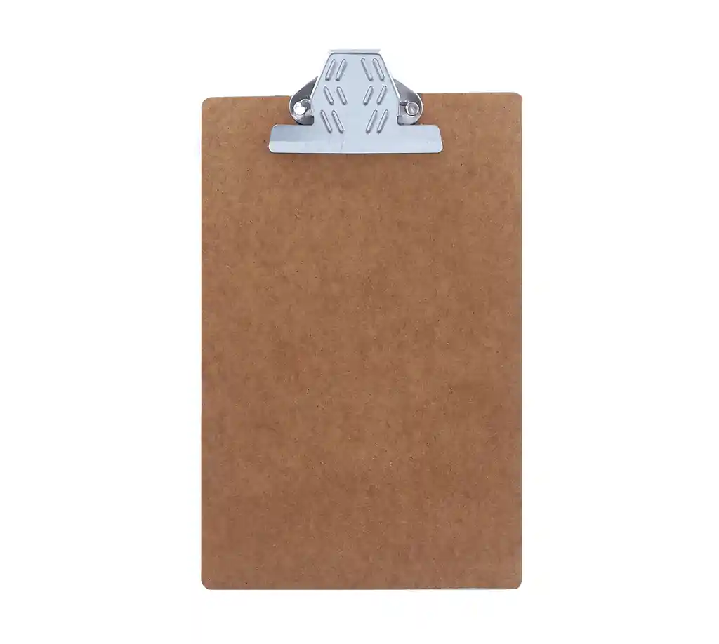 Tabla de apoyo elaborada en madeflex, calibre grueso para dar una mayor resistencia al quiebre, superficie lisa, plana y sin imperfecciones, con gancho metálico para la sujeción de los papeles. Medidas: 36 x 23 cm